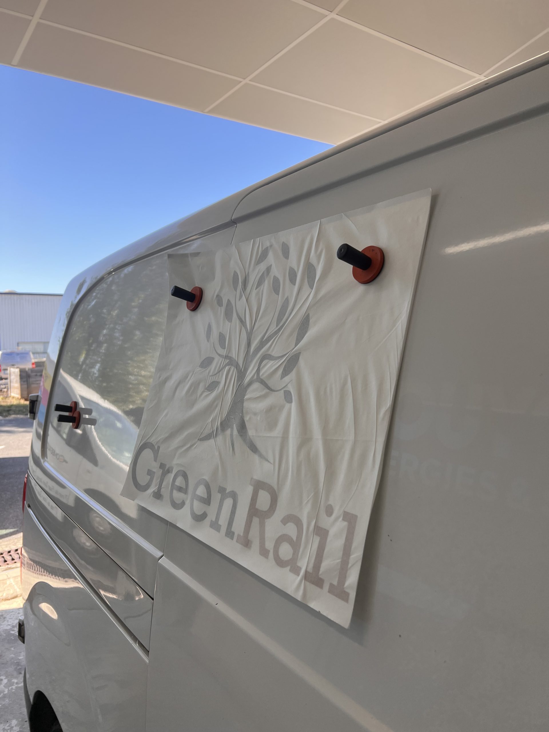 - Marquage des véhicules : chaque véhicule de l’entreprise est devenu un ambassadeur visuel, reflétant l’identité de GreenRail sur la route.